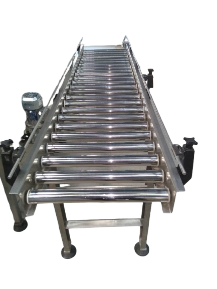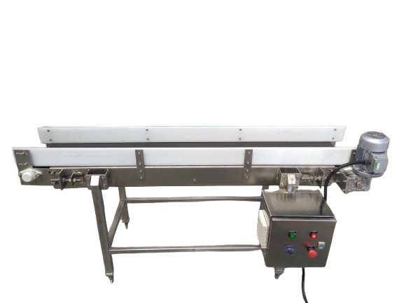 A Transfer Conveyor is a specialized material handling system designed to move products efficiently from one conveyor line, machine, or processing stage to another. It ensures smooth, accurate, and uninterrupted flow of materials across different sections of a production or packaging line.